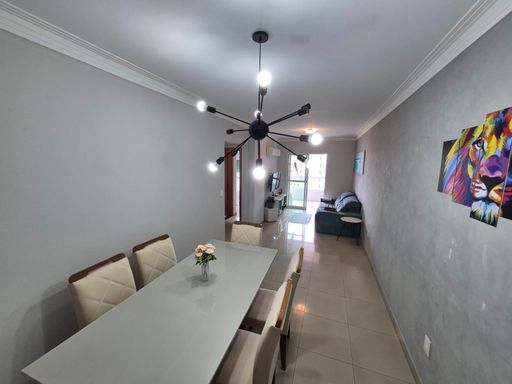 Apartamento com 02 quartos sendo 01 suíte, ampla sala com espaço para 02 ambientes, cozinha americana, varanda gourmet com churrasqueira a carvão, lavanderia separada da cozinha, quartos com persianas em alumínio branco, sol da Manhã.