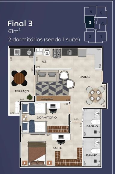 📐 **Final 03 – 61,46 m² de área útil**