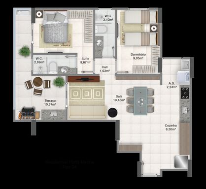 74,65 m² de área útil