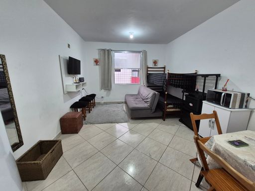 A kitnet é bem iluminada e possui ventilação cruzada, proporcionando ambiente mais fresco e agradável no dia a dia.