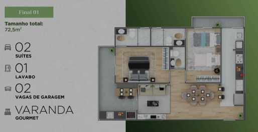 🔹 UNIDADE 141 – 72,05m² - Entrada: R$ 345.000,00